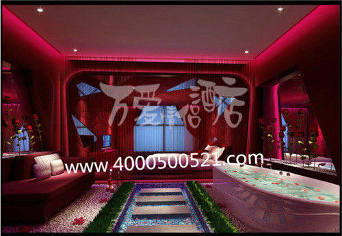 双井店55间主题房,每个房间都是采用完全不同的设计风格,阐述不同的浪漫主题,满足客户对浪漫的无限遐想。灰姑娘的南瓜车、置身薰衣草海洋的紫色浪漫,摩登时尚的原始洞穴、未来世界的科技房、小美人鱼的水下世界,55间造型新颖的爱舍,都是全体万爱人的各方配合之下倾力打造而成。