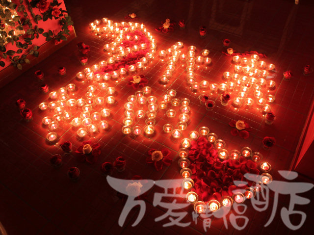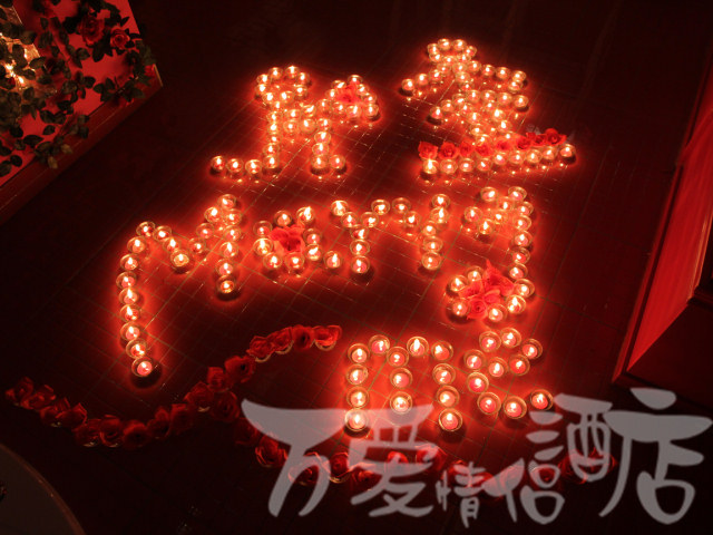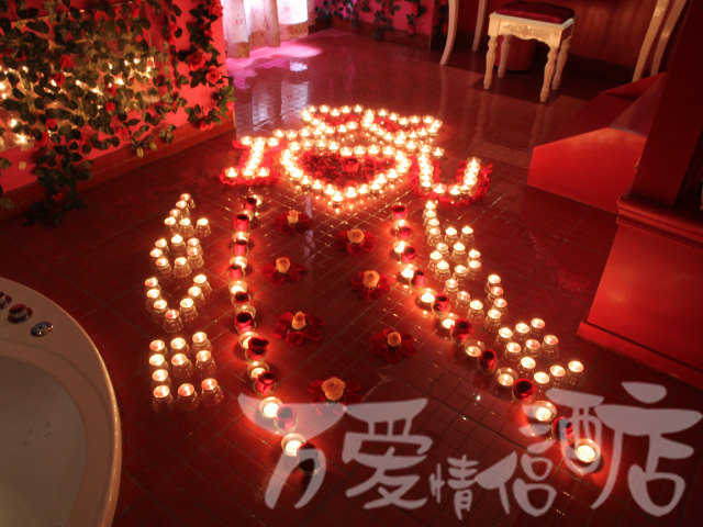 一对情侣,男孩在中戏上学,女朋友在南京了;在女朋友过生日时,在万爱情侣酒店紫竹桥店反复挑选感觉女朋友会喜欢的房间,选好后又和酒店服务人员一起商量设计浪漫布置,足足用了一天时间,用玫瑰花、蜡烛和生日礼物精心在房间内进行布置。然后怀着忐忑的心情去北京南站接上女朋友,快到酒店时,男孩给酒店打个电话,暗号马上到酒店;前台人员迅速到男孩预定布置的房间点上全部蜡烛,让浪漫布置达到最佳的效果。当女孩打开酒店房门时,看到男孩用心布置的浪漫场景,女孩当时就控制不住,感动的热泪盈眶,幸福的哭了起来。在这样一个充满爱的房间,浪漫的气氛久久不停息。
