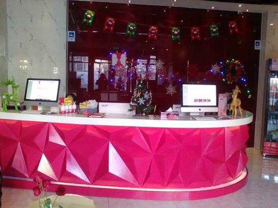 进入其中,更是圣诞味儿十足。看我们的前台上那两只圣诞鹿,恭迎的您的光顾。干净、整洁,用心做好每一个细节,用心留住每一个顾客。