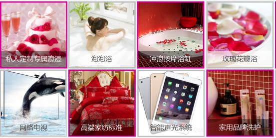 40寸小米智能电视、智能APP控制、豪华双人按摩冲浪浴缸、超大情趣浪漫水床、精品时尚卫浴灯饰,所有这些全部采用五星级标准来配置。小到客人接触到的浴巾、地巾、牙膏、牙刷都是严格把控质量,甚至苛刻!一流配置,房均造价超10万。