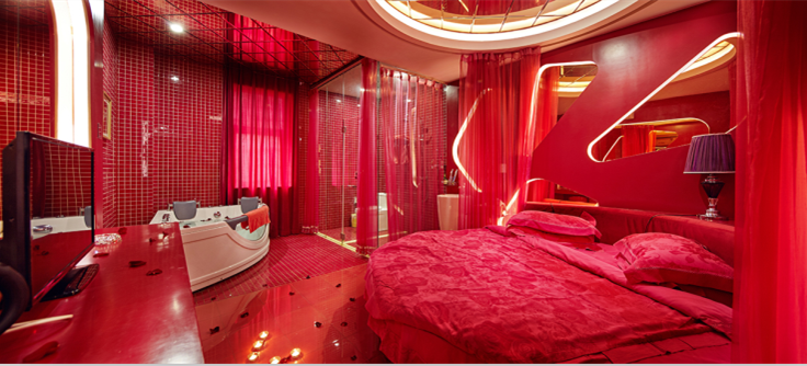一个房间,一个梦幻的世界;一个空间,一段浪漫的际遇。你可以在阳光玻璃房里夜晚仰望星空,清晨沐浴阳光;你可以去“海角七号”里聆听海的波动;你可以在“Hello Kitty”中圆你的公主梦;你可以躺在“青丝幔”的白色大床上屏息凝视;你也可以在“长相依”的红色幔帐中许下你的海誓山盟;你可以在密云水库旁感受青山绿水;你可以用独特的智能灯光音乐系统实现个性化音乐定制……你心中的浪漫有几重风情?我在努力猜测,也在努力提供。